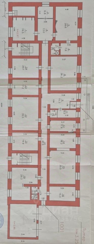 Всего: 13 кабинетов, 4 санузла, 2 хозяйственных помещения.