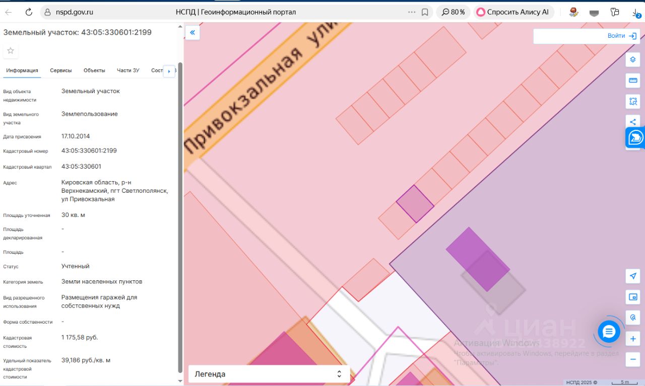 Земельный участок с кадастровым номером 43:05:330601:2199 площадь 30 по адресу Кировская область, р-н Верхнекамский, пгт Светлополянск, ул Привокзальная