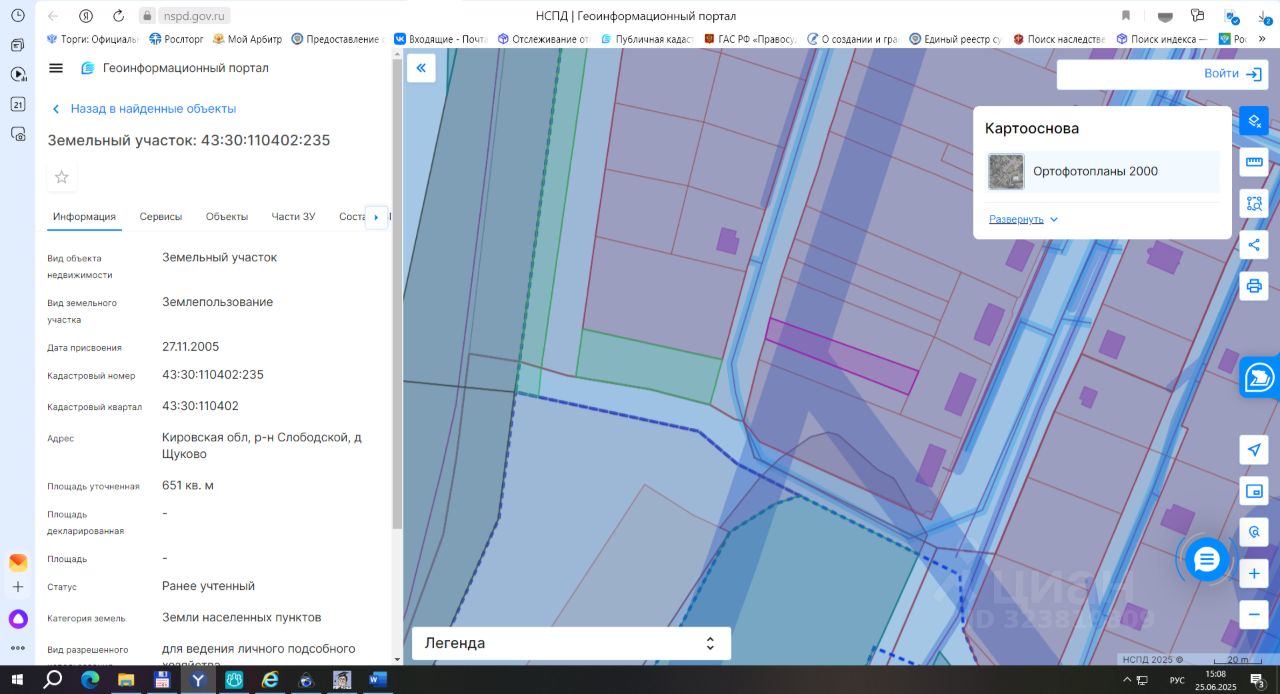 Земельный участок с кадастровым номером 43:30:110402:235 площадь 651 по адресу Кировская обл, р-н Слободской, д Щуково