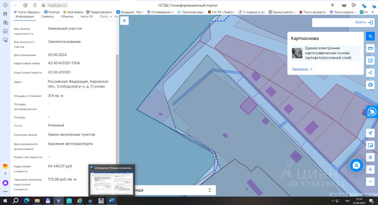 Земельный участок с кадастровым номером 43:30:410301:1304 площадь 314 по адресу Российская Федерация, Кировская обл., Слободской р-н, д. Стулово