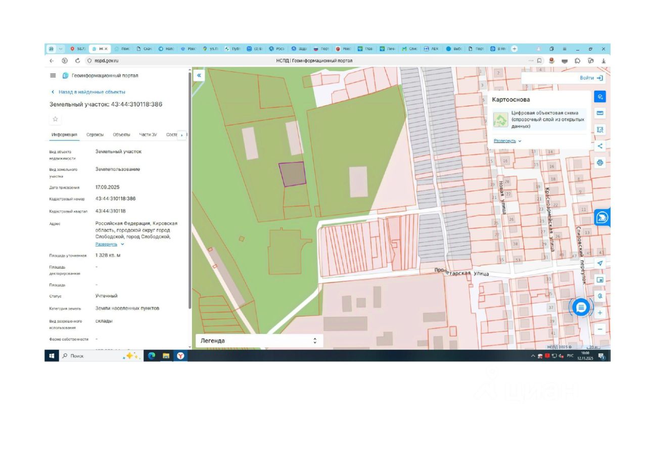 Земельный участок с кадастровым номером 43:44:310118:386 площадь 1328 по адресу Российская Федерация, Кировская область, городской округ город Слободской, город Слободской, улица Маршала Конева, земельный участок 1б