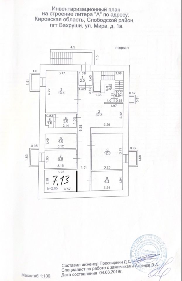 Центральные коммуникации, стены кирпич, ЖБ плиты перекрытия. Полноценный этаж 85.5 кв.м. и цокольный под ним, несколько входов. Схема этажей на фото. Цокольный этаж - кабинеты. На 1 этаже предыдущий арендатор - аптека. Возможность перепланировок и ремонтов под себя с арендными каникулами.