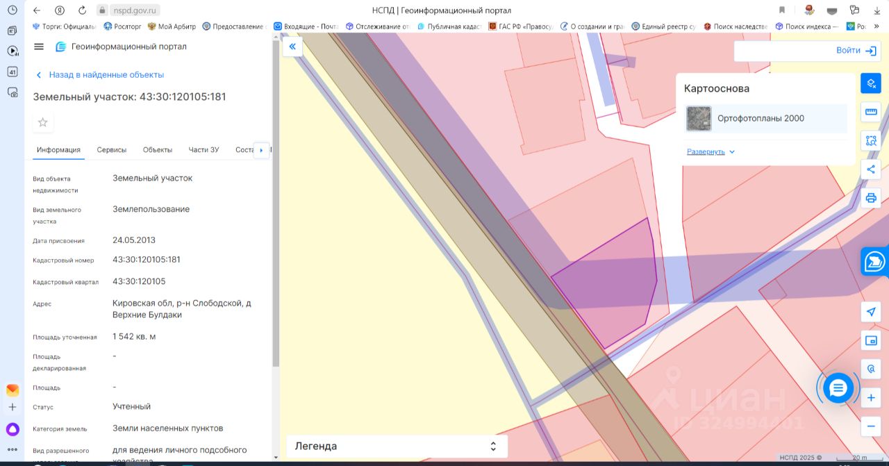Земельный участок с кадастровым номером 43:30:120105:181 площадь 1542 по адресу Кировская обл, р-н Слободской, д Верхние Булдаки