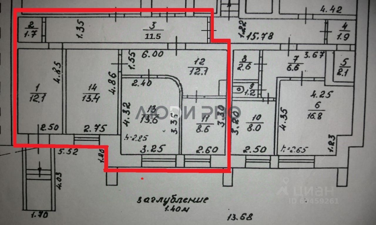 Приемная 12 кв.м., 3 отдельных изолированных кабинета: 13,4 кв.м., 13,6 кв.м., 8,6 кв.м.