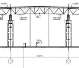Шаг колонн: 18-12 метров. Высота до низа ферм 10 м, до кровли 11 м