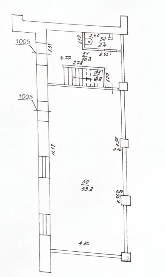 Помещение на двух этажах. Метраж первого этажа 53 квм состоит из одного помещения с легкими перегородками, которые можно легко демонтировать. Второй этаж - 127 квм, состоит из четырех просторных кабинетов. В помещениях есть вывод на 380 Вт, технические отверстия для вытяжки.