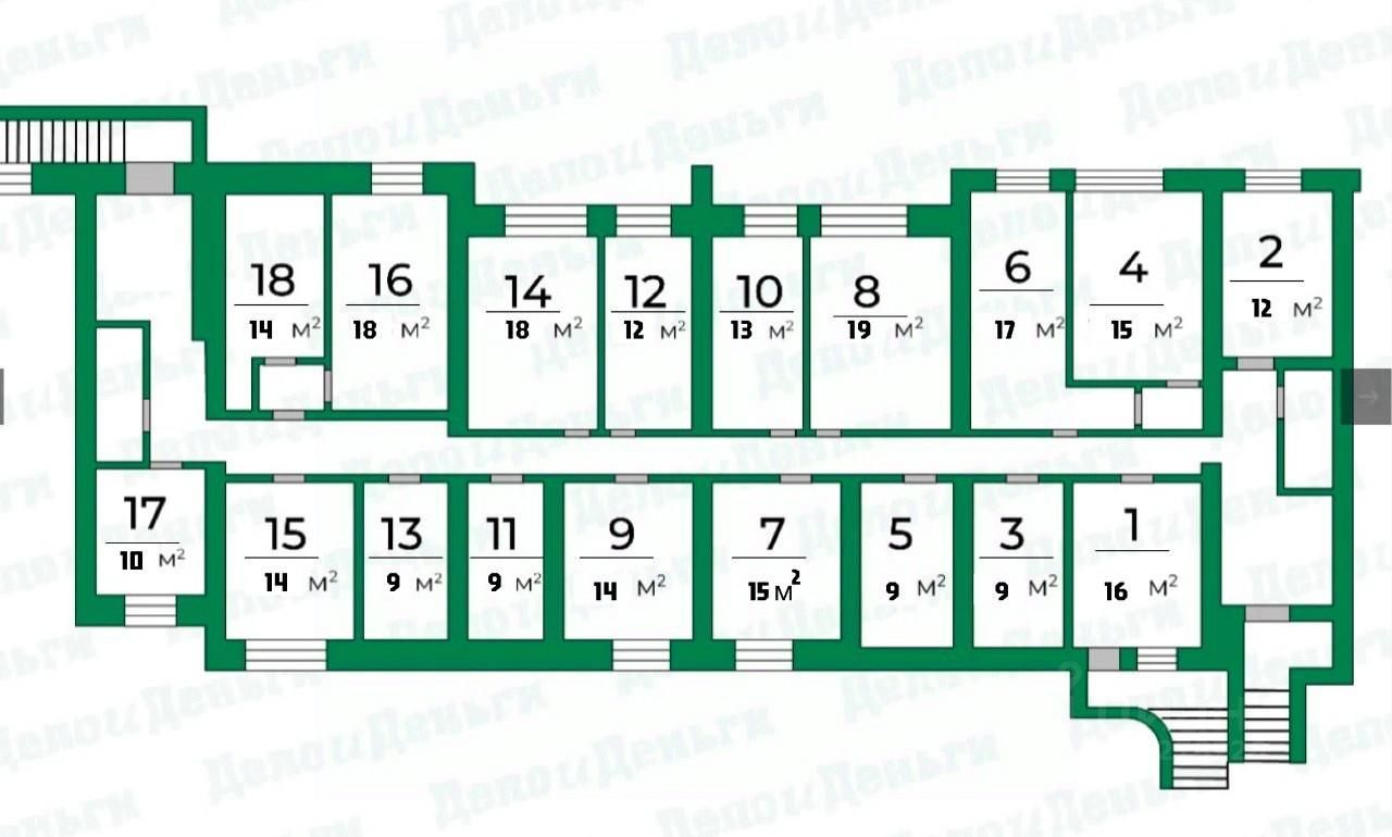 - Разнообразные варианты: Всего 17 кабинетов площадью от 9 до 18 кв.м, что позволяет выбрать лучшее для ваших нужд.