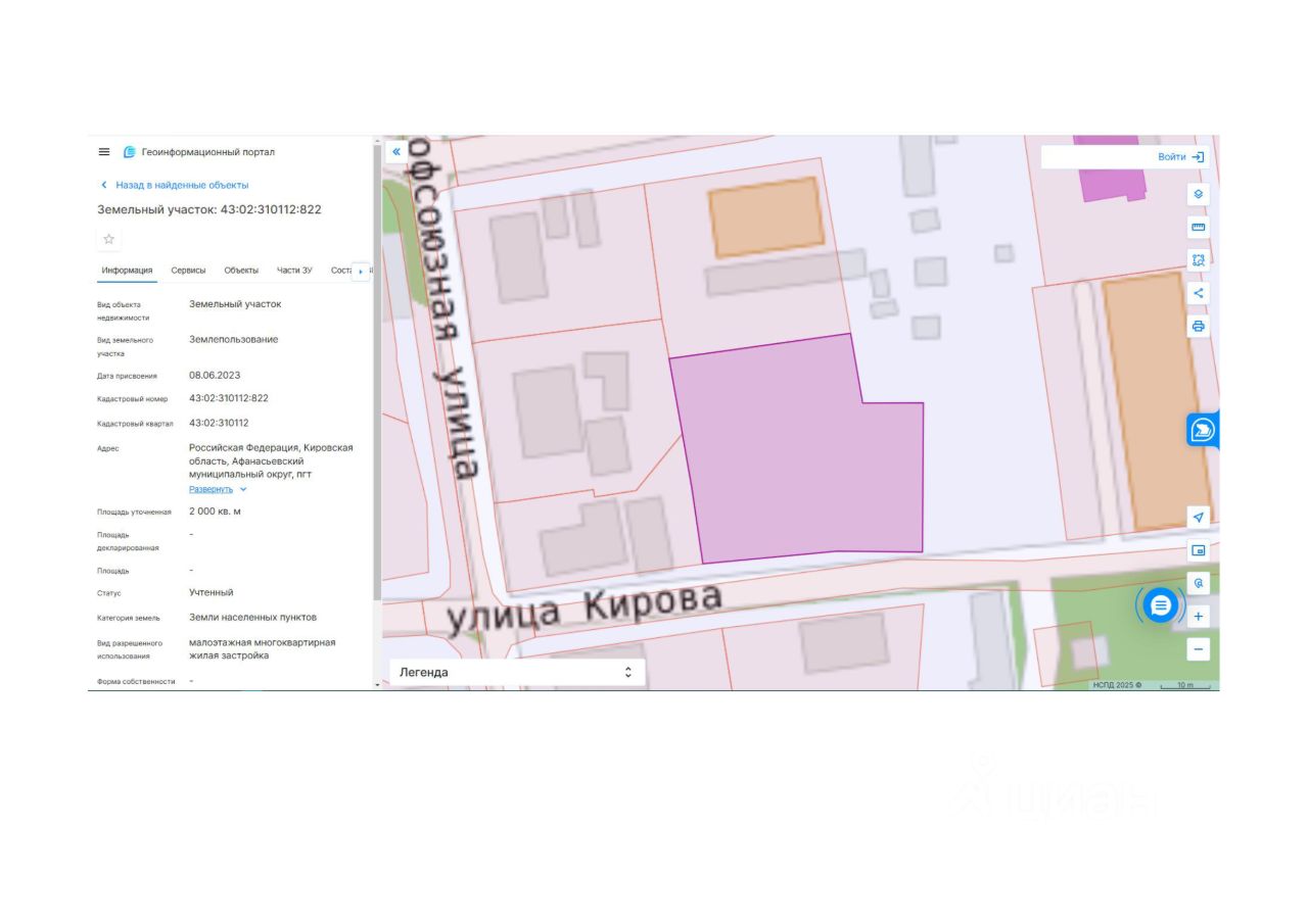 Земельный участок с кадастровым номером 43:02:310112:822 площадь 2000 по адресу Российская Федерация, Кировская область, Афанасьевский муниципальный округ, пгт Афанасьево