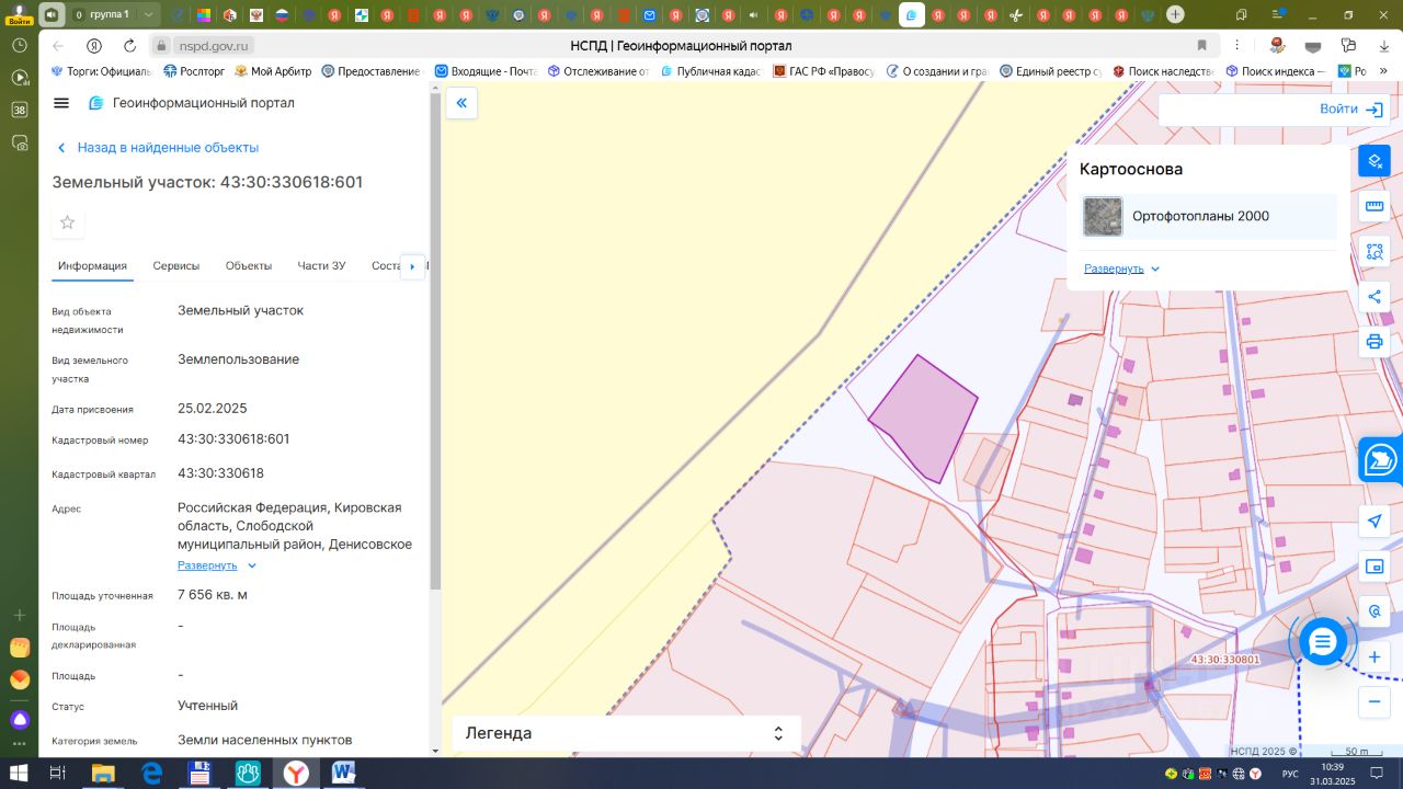 Земельный участок с кадастровым номером 43:30:330618:601 площадь 7656 по адресу Российская Федерация, Кировская область, Слободской муниципальный район, Денисовское сельское поселение, д. Денисовы, улица Производственная, земельный участок 26А