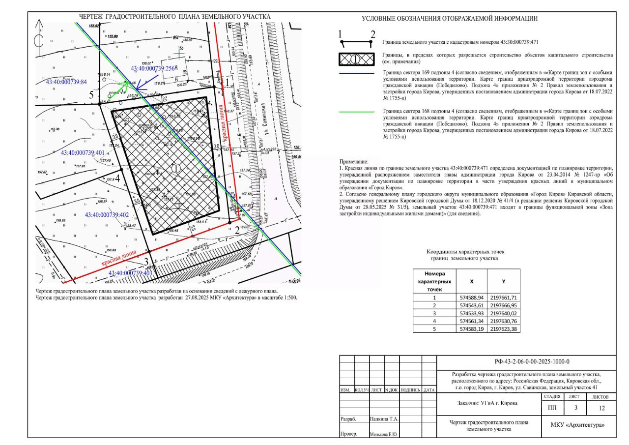 Земельный участок с кадастровым номером 43:40:000739:471. Адрес: Российская Федерация, Кировская обл., г.о. город Киров, г. Киров, ул. Савинская, земельный участок 41, категория земель - земли населенных пунктов, вид разрешенного использования магазины, территориальная зона зона делового, общественного и коммерческого назначения (Ц-2А), площадь 1628+/-4 кв. метра.