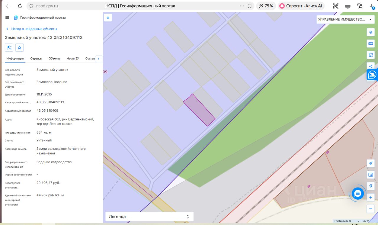 Земельный участок с кадастровым номером 43:05:310409:113 площадь 654 по адресу Кировская обл, р-н Верхнекамский, тер сдт Лесная сказка
