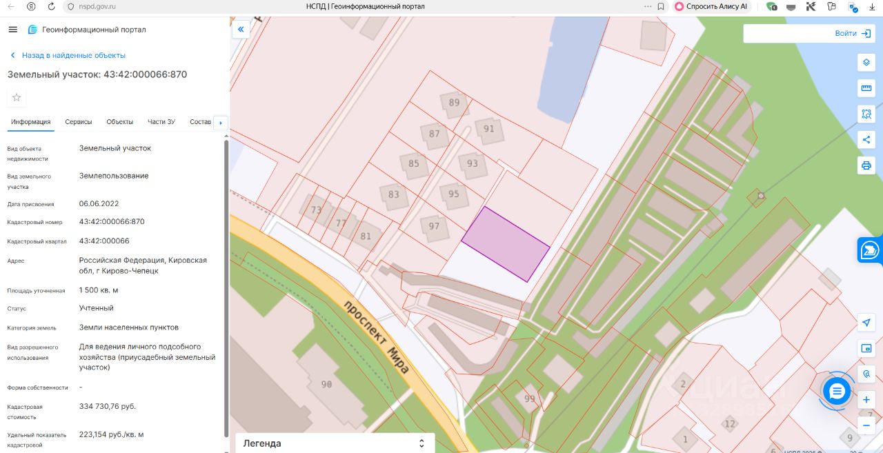 Земельный участок с кадастровым номером 43:42:000066:870, Адрес: Российская Федерация, Кировская область, г. Кирово-Чепецк. Общая площадь 1500 +/- 14 кв.м. Категория земель: земли населенных пунктов.