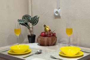 Квартира полностью укомплектована для комфортного проживания: комплект постельного белья, 2 одеяла, 4 подушки, в кухне есть телевизор со смарт-тв и Wi-fi, стиральная машинка, холодильник, посуда для приготовления и приема пищи.