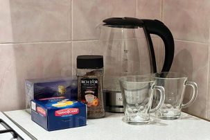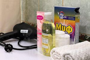 Бытовая техника, оборудованная кухня, полный комплект посуды для приготовления и приёма пищи. Для вас всегда свежее постельное белье и большие махровые полотенца. Чай, кофе, сахар бесплатно, средства личной гигиены тоже