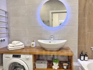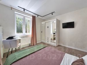 Спальня и гостиная двуспальная кровать с ортопедическим матрасом, смарт-тв, кондиционер, wi-fi интернет, набор подушек 7070 и одеял, утюг, гладильная доска, сушилка для белья, фен и стиральная машина.