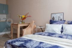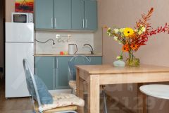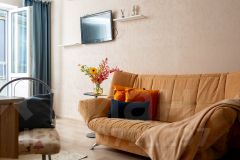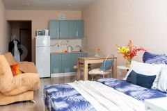 Квартира-студия посуточно в Кирове. Бесконтактное заселение! Красивая видовая квартира на 6-м этаже. Несмотря на близость к центру, рядом красивый сосновый лес, отличное место для утреней или вечерней прогулки. Новая квартира в современном дизайнерском решении, находится рядом с центром города, и в одновременно спокойном спальном микрорайоне Курочкины. Идеально подходит для командировок и отдыха Всё включено. Все квартиры проверены и полностью соответствуют фото! У нас уже более 3500 довольных гостей! _______________________________________________ Что вы получите после заезда: Квартиру в новом ЖК, на территории - развитая инфраструктура: магазины, кафе, пекарни, детские и спортивные площадки. Всю необходимую бытовую технику (стиральную машинку, холодильник, фен, плазменный телевизор, утюг, микроволновую печь и чайник). Удобную укомплектованную кухню с обеденной зоной. Широкую двухспальную кровать с чистым белым постельным бельем для крепкого сна. Комфортный двуспальный диван. Отличный вид с лоджии! Опрятную и просторную ванную комнату + свежие полотенца. Размещаем командированных гостей и предоставляем полный пакет отчетных документов. Работаем с юридическими лицами и организациями, с и без НДС. Бесплатную парковку во дворе. Бесплатный Wi-Fi _______________________________________________ Мы ответственно относимся к квартире! Выполняем генеральную уборку и дезинфекцию после каждого постояльца. За квартирой следим: вся сантехника и проводка проверены ничто не испортит ваш отдых. Квартира отлично подойдет для фотосессий! _______________________________________________ Все находится рядом: Рядом расположен ТЦ, где есть продуктовая лавка, хозяйственный магазин и аптека. Дорога до центра города займет всего 10 минут на авто. Вы с легкостью доберетесь до основных достопримечательностей - диорама и цирк, колизей и центральный парк с озером. До аэропорта Победилово всего 30 минут! До ЖД вокзала всего 10 минут!