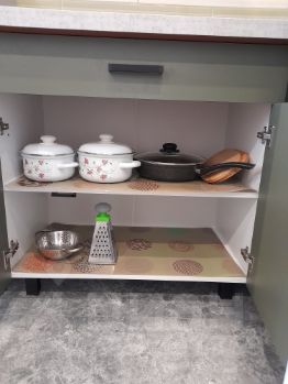 4. Кухонная зона оснащена посудой.