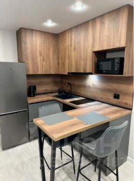 В студии есть вся необходимая техника: холодильник, телевизор, стиральная машина и кондиционер. В комнате и на кухне имеется мебель, что позволяет сразу заселиться без дополнительных хлопот. Санузел совмещённый, оборудован ванной.