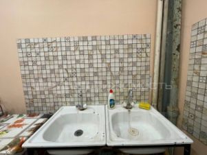 На общей кухне имеется электроплита, 2 мойки и у каждой комнаты свой шкаф для хранения посуды и продуктов.