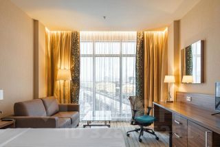 • Делюкс с большой двуспальной кроватью и раскладным диваном-кроватью с панорамным видом на город идеальное решение для семейного отдыха или длительной командировки, когда важно дополнительное пространство для работы и релаксации