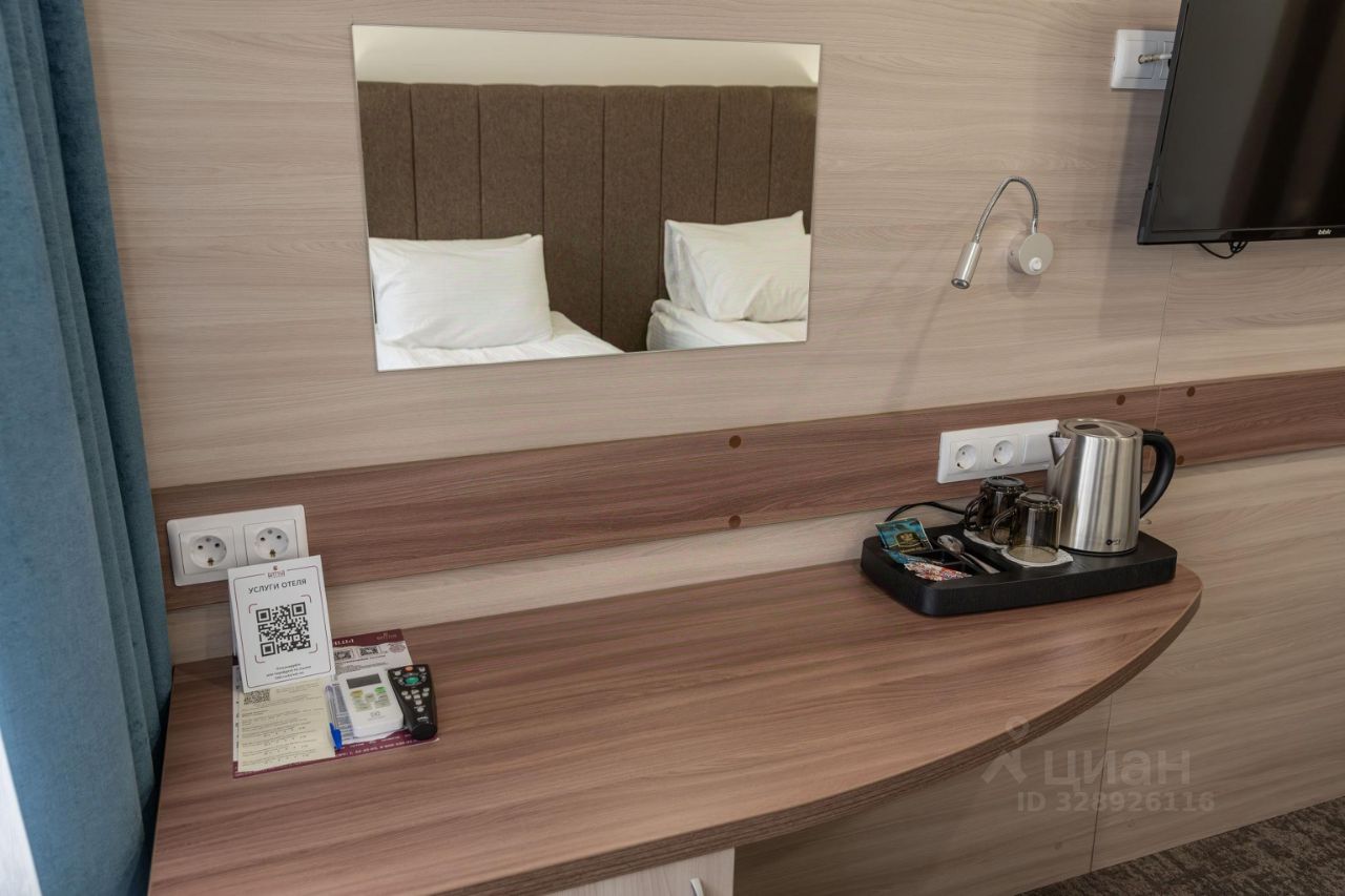 В номере: широкая кровать (1,4 метра), индивидуальный кондиционер, телефон, телевизор, холодильник, чайник, фен, набор для приготовления чая и кофе, комплект полотенец, туалетные принадлежности, wi-fi.