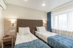 Для бронирования предлагаются номера различных категорий: от одноместного Стандарта до просторного Люкса. Все они оснащены комфортабельной мебелью, Wi-Fi, кондиционером, телефоном, телевизором, холодильником, чайником, удобной рабочей зоной и собственной ванной комнатой с туалетно-косметическими принадлежностями.