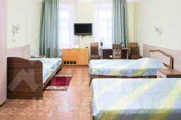 Просторные номера с тремя односпальными кроватями, умывальником, телевизором, электрическим чайником. Wi-Fi, санузел, туалеты и душевые на этаж.