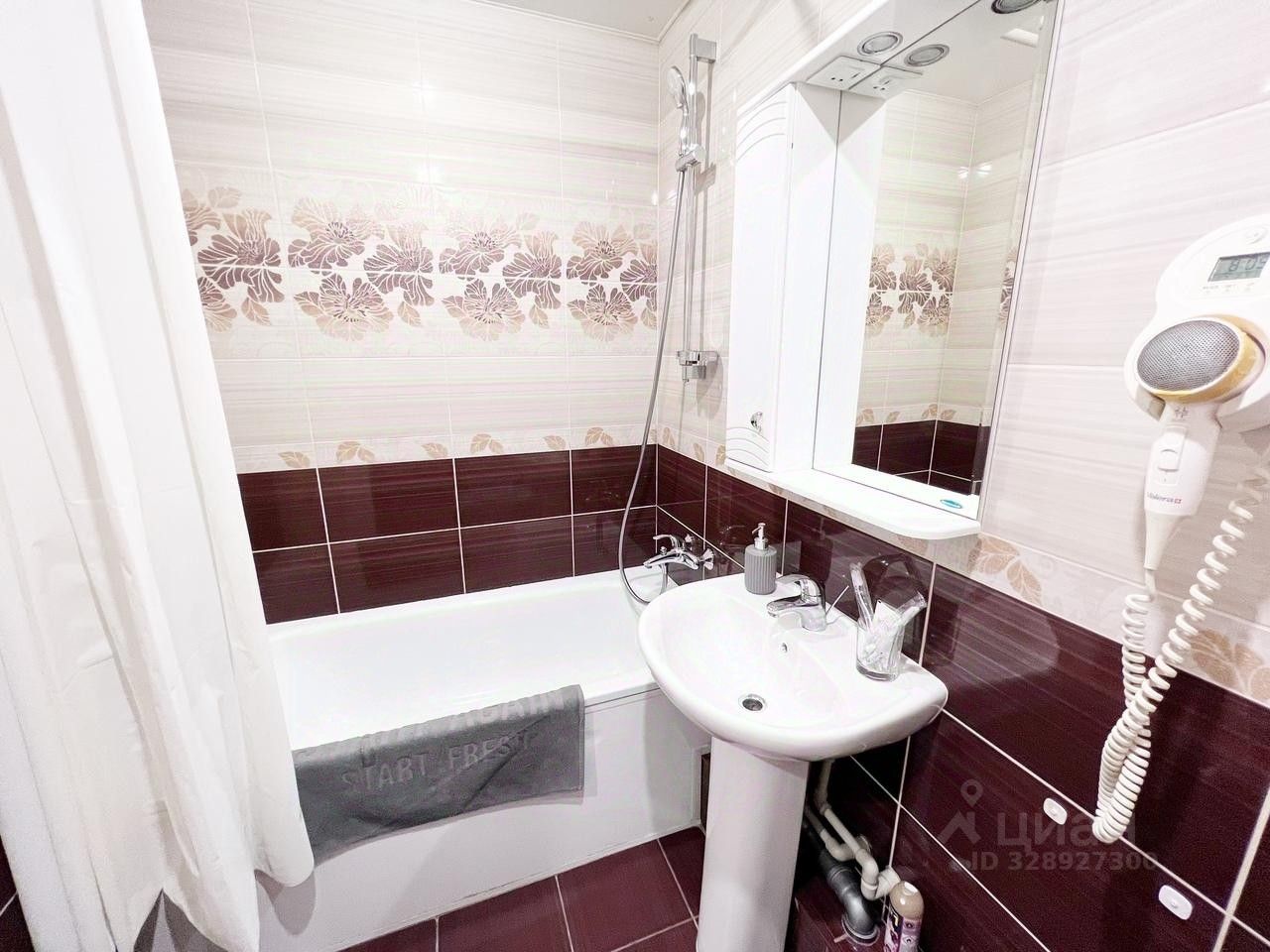 Отдельная ванная с ванной и феном,