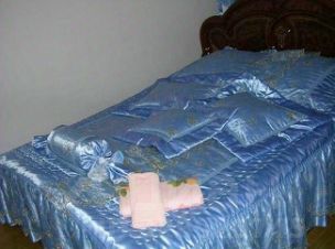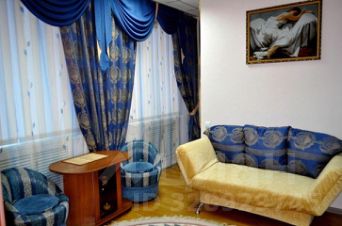 В номере: спальня, гостиная, двуспальная кровать и диван-кровать, стол, , бра, шкаф-купе, кресло, кондиционер, журнальный столик, набор полотенец,,халат, тапочки телевизор, Wi-Fi, чайник, холодильник, чай. В ванной: фен,туалет, раковина, душ, душевая кабина. Удобства (кулер, гладильные принадлежности) на этаже.