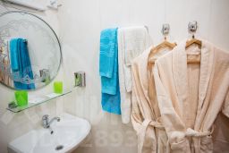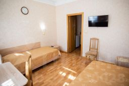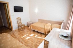 Просторный номер с двумя односпальными кроватями, диваном, ТВ, кондиционером, холодильником и телефоном. Для вашего комфорта в номере есть ванная и махровый халат, фен, набор посуды, чайник.