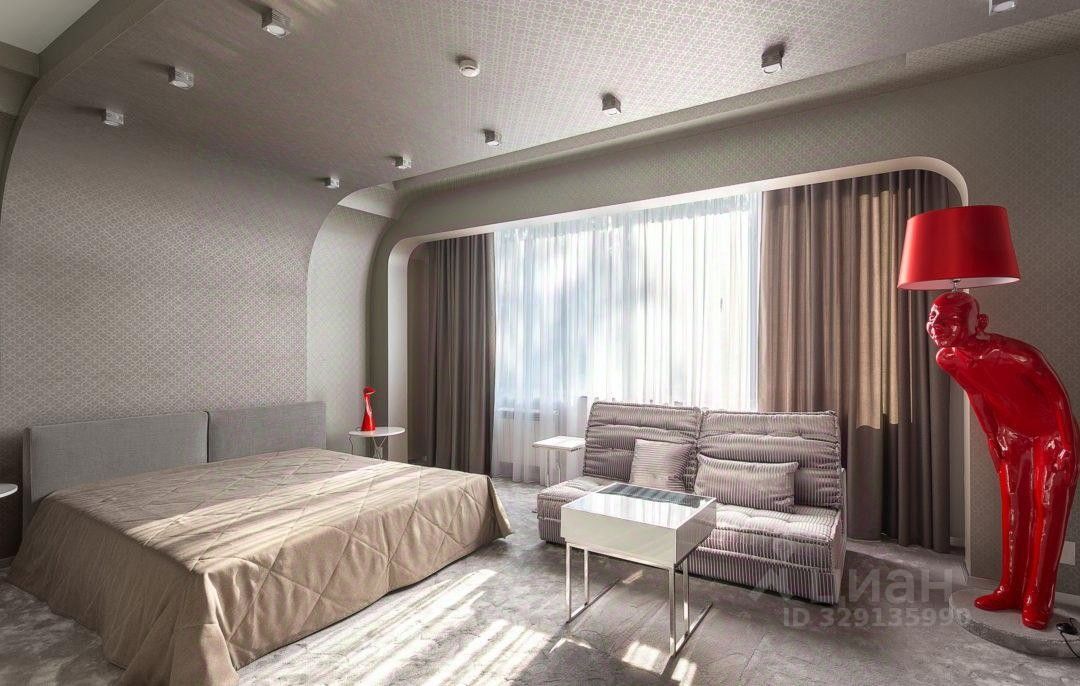 Номер комфорт "Красный человек". Номер-сюрприз. Экстравагантный, неординарный интерьер с яркими акцентами. Необычная ростовая лампа, выполненная в виде красного человека. Одна большая кровать.