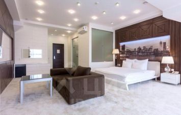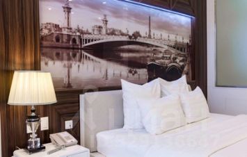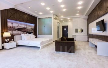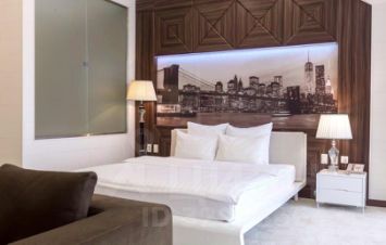 Номер полулюкс "Город". Нежные кофейно-кремовые цвета с интерьере спальни подарят ощущение теплоты. Панорамные окна откроют Вашему взору ночной город в ярких огнях.