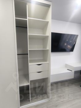 В 3 комнате находится большой встроенный шкаф-купе, телевизор, подвесные тумба и рабочий стол, очень большой и удобный диван.