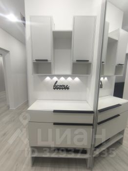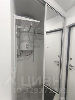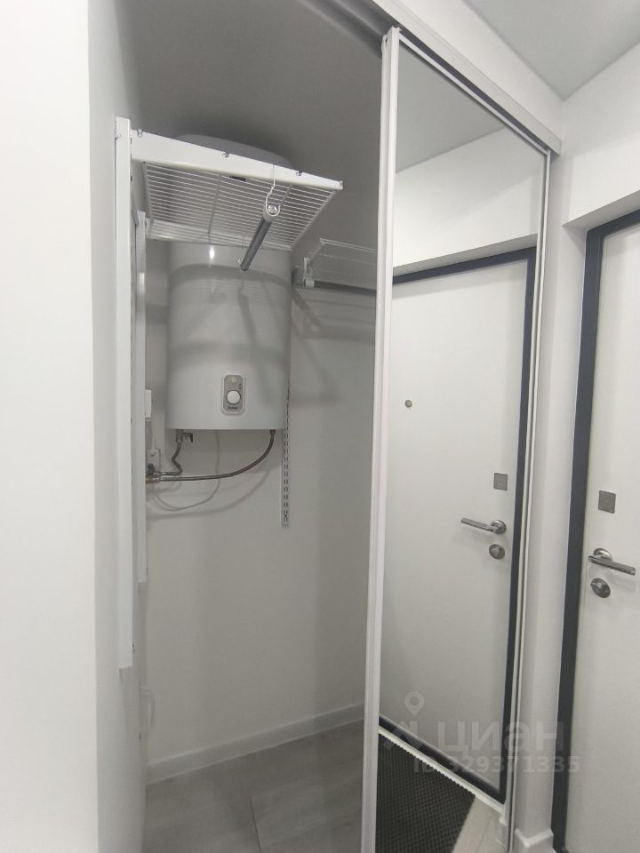 В прихожей установлена гардеробная за дверями купе, в ней находится водонагреватель для экономии места в санузле. Обувница, вешало для одежды, пуф с ящиком для хранения.
