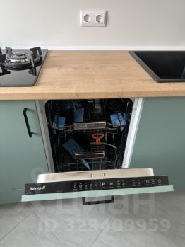 Кухня оборудована всем необходимым: встроенная плита, посудомоечная машина и холодильник. Вся техника абсолютно новая, еще в заводской упаковке.