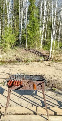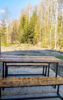 Первый этаж- сауна, диван, кухня, телевизор, колонка, чайник, посуда, решётка, шампура, казан.