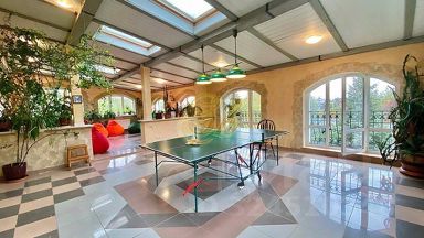 2 этаж: -балкон с видом на каминный зал -спальня ( 2 двуспальные кровати) -спальня ( двуспальная кровать+полуторная кровать+ТВ) -спальня ( двуспальная кровать+диван раскладной) -с/у +ванна+душевая -зимний сад с теннисом и кальянной зоной