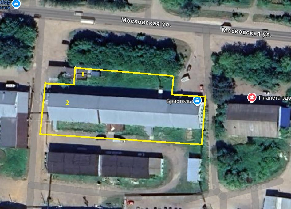 2. Здание производственное с административно-бытовыми помещениями. Площадь 2500 кв.м. Двухэтажное. Отапливаемое. Расположено на красной линии. На первом этаже есть магазины Йола и Бристоль.