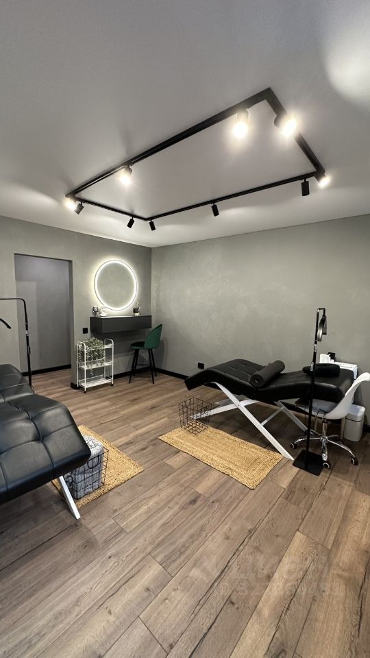студия 2 уровня , на 1 этаже санузел, зона ожидания , на втором этаже 3 кабинета , подсобное помещение , в каждом кабинете стоит кондиционер.