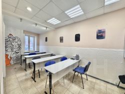 Помещение размещено на первом этаже торгово-делового комплекса, что гарантирует высокий пешеходный и транспортный трафик. Внутренняя планировка включает 4 кабинета, холл, ресепшен и два санузла, что создает комфортные условия для работы. Все помещения выполнены в современном стиле: установлены пластиковые окна, на полу керамогранит, а на стенах эффектная штукатурка. Ремонт выполнен по индивидуальному дизайн-проекту, который мы предоставим новым собственникам.