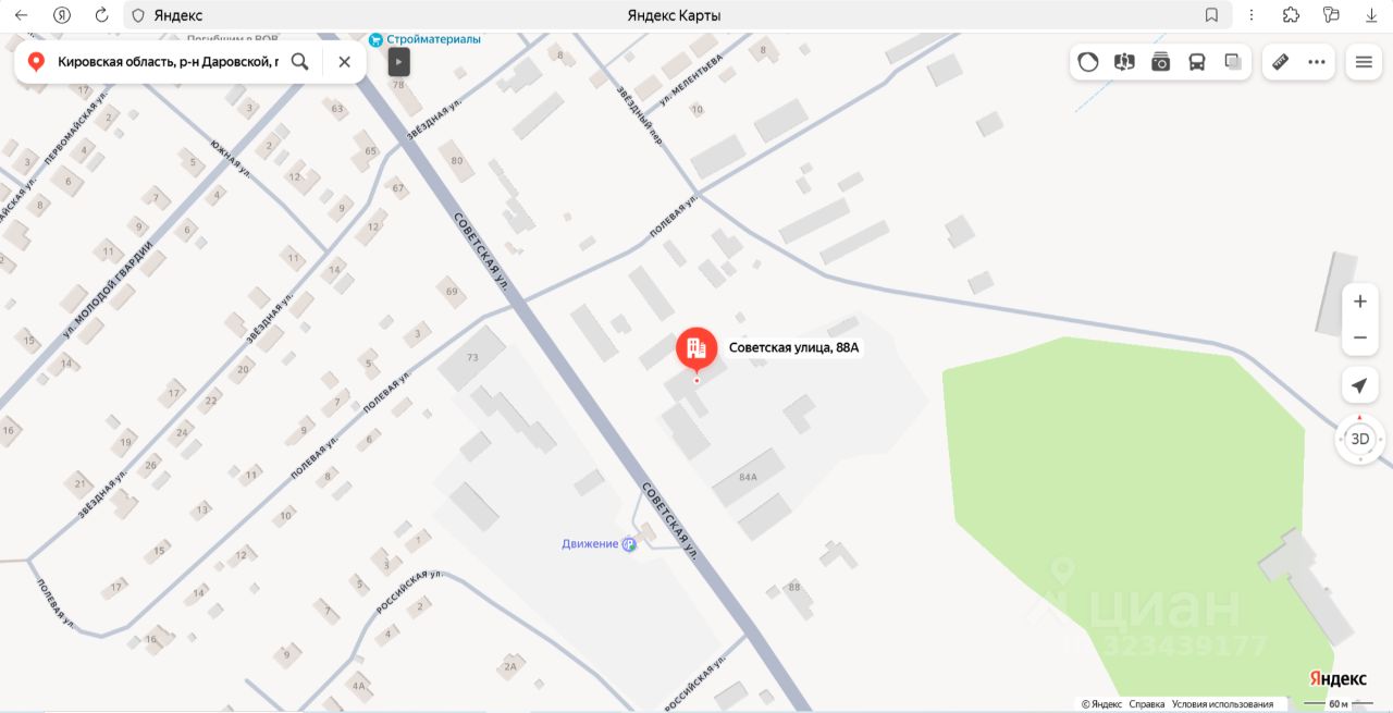 Нежилое здание "деревообрабатывающий цех  2" площадью 159,3 кв.м., кадастровый номер 43:08:310418:58, расположенное по адресу: Кировская область, р-н Даровской, пгт. Даровской, ул. Советская, д. 88а/2. Количество этажей  1, в том числе подземных  0. Объект недвижимости расположен в границах земельного участка с кадастровым номером 43:08:310418:28, право государственной собственности в отношении которого не разграничено. В отношении земельного участка оформлены арендные отношения с Администрацией Даровского района Кировской области. Вид права  собственность. Обременение  аресты. Собственник  Тарасов С.Л. (уведомление  2214 от 29.08.2025).