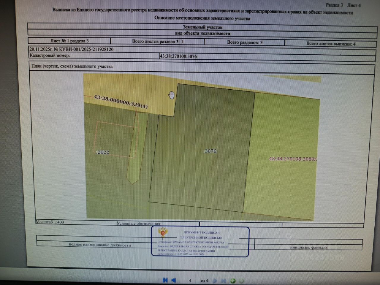 Земельный участок с кадастровым номером 43:38:270108:3076 площадь 1076 по адресу Российская Федерация, Кировская область, м.р-н Юрьянский,