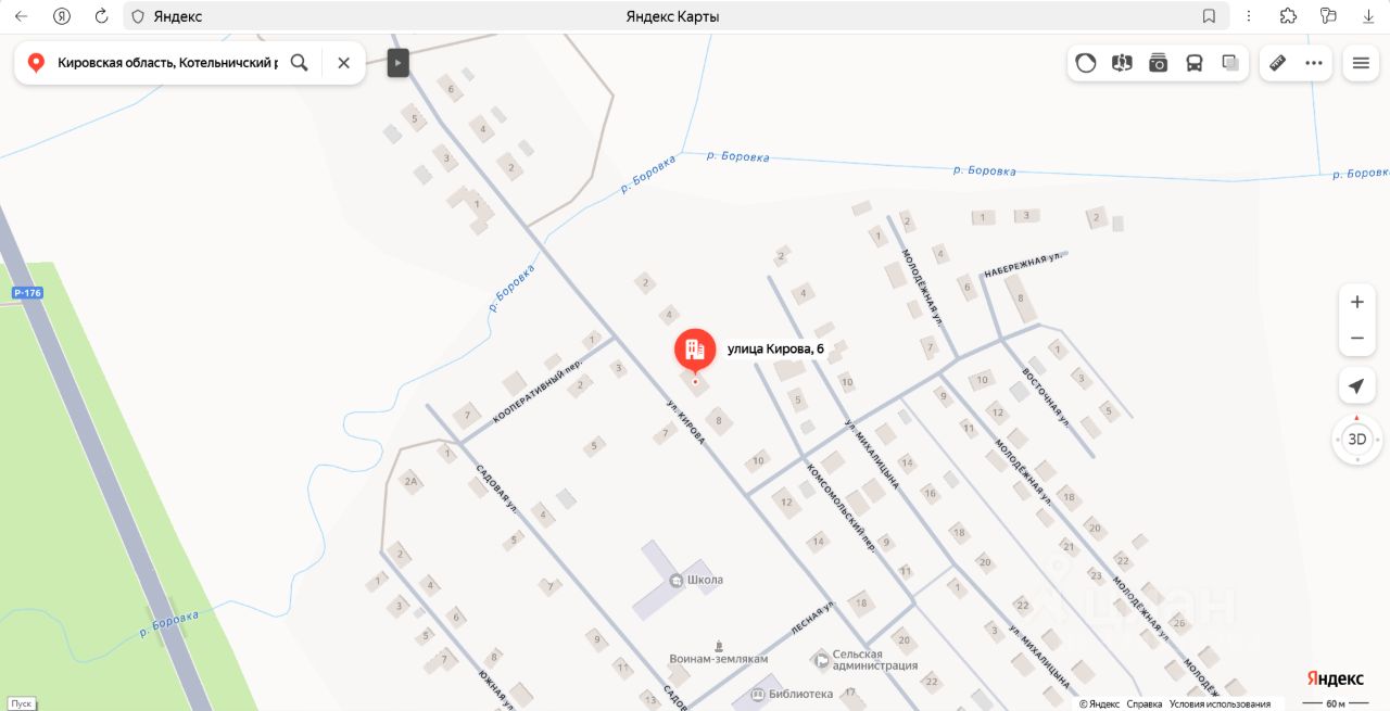 Нежилое здание "магазин" площадью 293,4 кв.м., кадастровый номер 43:13:460202:286, расположенное по адресу: Кировская область, Котельничский район, с. Боровка, ул. Кирова, д. 6. Количество этажей 1, в том числе подземных 0. Вид права собственность. Обременение аресты, запрет, наложенный Казбековским РОСП УФССП России по Республике Дагестан. Объект недвижимости расположен в границах земельного участка с кадастровым номером 43:13:460202:14, право государственной собственности в отношении которого не разграничено. В отношении земельного участка арендные отношения не оформлены. Собственник Гаджимагомедов А.З. (уведомление 2582 от 01.10.2025).