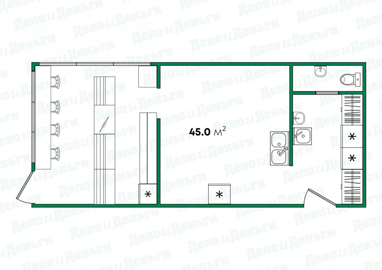 Помещение, площадью 45 кв.м., отлично подходит для организации бизнеса в сфере общепита, кулинарии, пекарни. Планировка павильона предусматривает удобный качественно оборудованный цех и торговый зал с витринными окнами и небольшой посадочной зоной. Отдельный вход для персонала (в цех), отдельный вход для посетителей (с улицы Воровского).