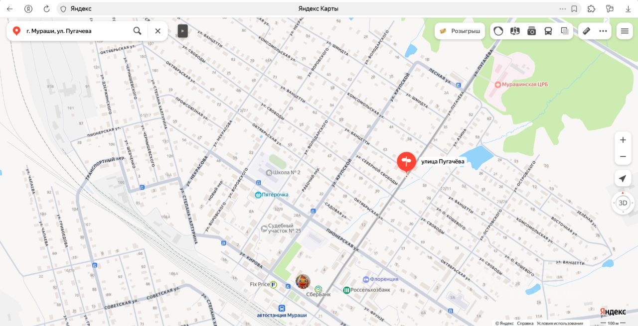 Нежилое здание "магазин" площадью 193,6 кв.м., кадастровый номер 43:18:310116:874, расположенное по адресу: Кировская область, Мурашинский муниципальный район, Мурашинское г.п., г. Мураши, ул. Пугачева, д. 3. Количество этажей 1, в том числе подземных 0. Объект недвижимости расположен в границах земельного участка с кадастровым номером 43:18:310116:592, право государственной собственности в отношении которого не разграничено. В отношении земельного участка арендные отношения не оформлены. Вид права собственность. Обременение аресты. Собственник Адамович К.Н. (уведомление 268-ГМУ от 05.12.2025).