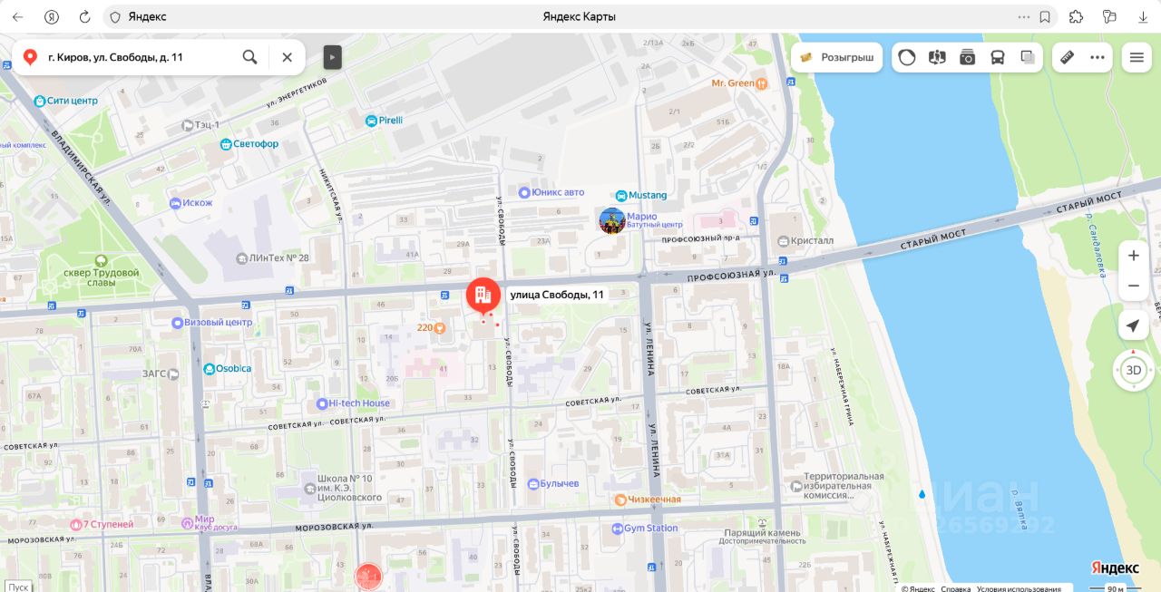 Нежилое помещение площадью 121 кв. м., кадастровый номер 43:40:000223:893, расположенное по адресу: Кировская область, г. Киров, ул. Свободы, д. 11, пом. 1005. Вид права собственность. Обременение аресты. Собственник ООО "РЭО-СЕРВИС" ИНН 4348036691 (уведомление 269-ГМУ от 05.12.2025).