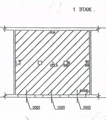 Первый этаж площадью 152,4 кв.м, трое автомобильных ворот 3 м х 3,3 м, высота потолка 4 м.