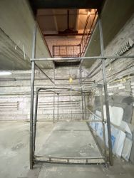 Есть опорная кран-балка с тельфером для подъема/спуска товаров и материалов с платформой.