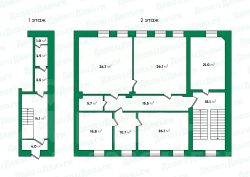 * Полностью готово под офис: включает 4 просторных кабинета, приёмную, удобную зону кухни, санузел и 3 подсобных помещения.