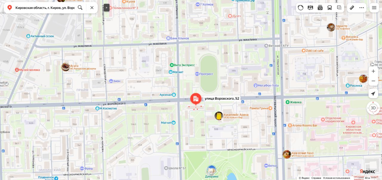 Нежилое помещение площадью 641,10 кв.м., кадастровый номер 43:40:000365:580, расположенное по адресу: Кировская область, г. Киров, ул. Воровского, д. 52, пом. 1006. Вид права собственность. Обременение аресты. Собственник Калашник О.Н. (уведомление 535 от 20.02.2026).